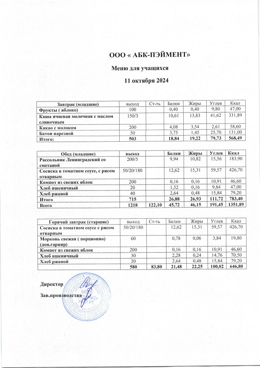 МЕНЮ на 11.10.2023
