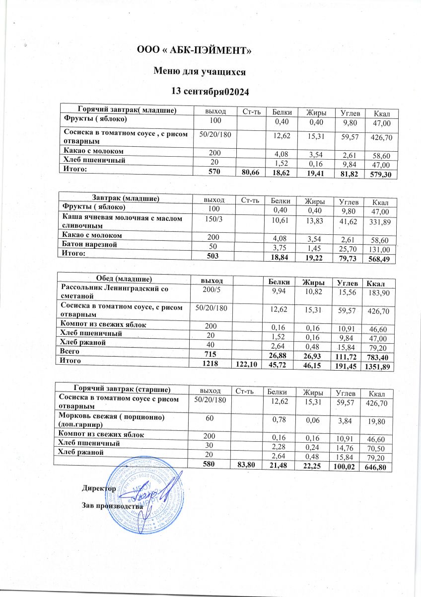 МЕНЮ на 13.09.2023