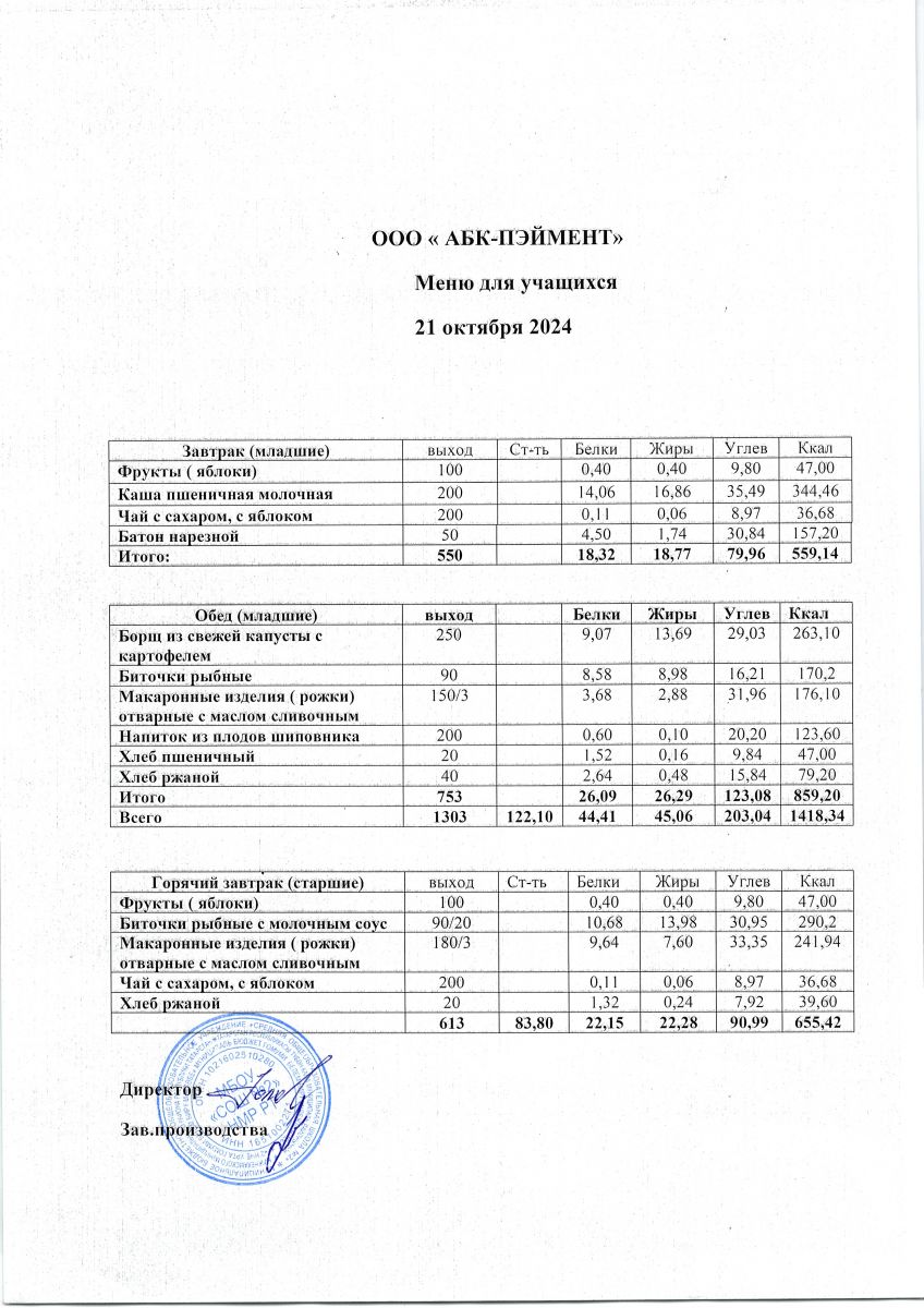 МЕНЮ на 21.10.2023