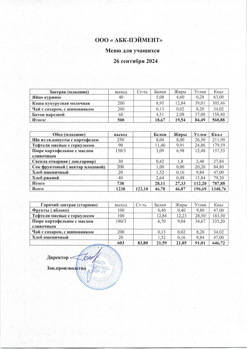 Меню на 26.09.2025