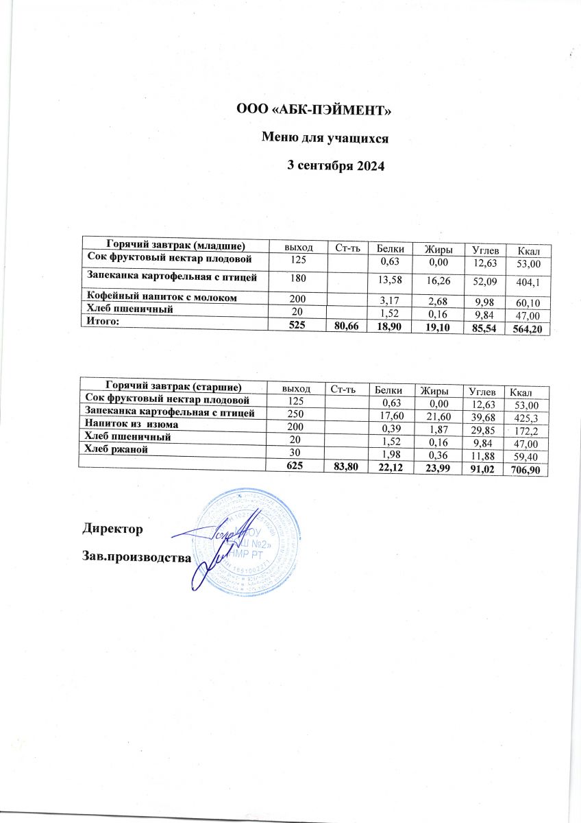 Меню на 03.09.2025
