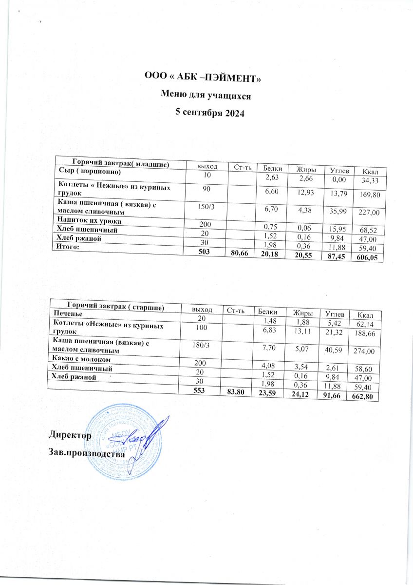 Меню на 05.09.2025
