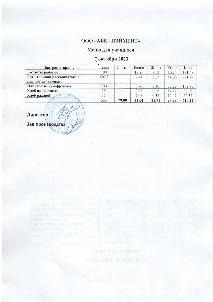 МЕНЮ на 07.10.2023