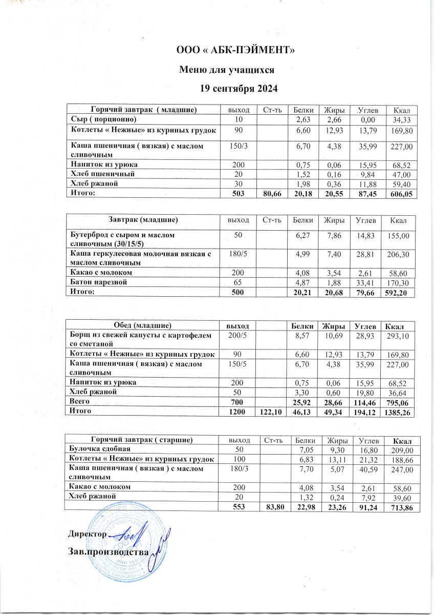 МЕНЮ на 19.09.2023