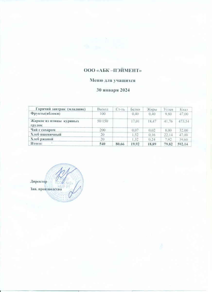 Меню на 30.04.2025