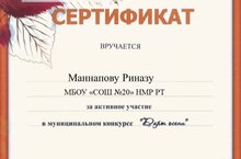 | Короткое название: | МБОУ "СОШ№20" НМР РТ |