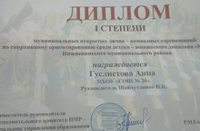 Поздравляем с дипломом 1степени Гуслистову Анну, ученицу 8 А класса !