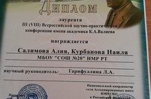 Ученица 9 Б класса Хайруллина Наиля (руководитель учитель родного языка и литературы, литературы Гарифуллина Лейсан Анасовна) стала лауреатом в секции №10 «Татарский язык и литература» во Всероссийской научно-практической конференции исследовательских, проектных и творческих работ учащихся и преподавателей имени академика К.А.Валиева, Лейсан Анасовна участвовала в секции учителей «Работа с одаренными учащимися» и опубликовалась в сборнике докладов III (VIII) Всероссийской научно-практической конференции имени академика К.А.Валиева с мастер - классом «Составление картограмм на уроках литературы по сказке К.Г.Паустовского «Теплый хлеб»».