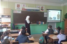 21 ноября в 4 Б классе побывали сотрудники городской библиотеки №6.Они провели мероприятие"Бизэклэрдэ халкым тормышы".