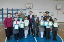 В рамках месячника по военно-патриотическому воспитанию в школе провели Смотр-конкурс строя и песни с приглашением ветерана ВОВ и казаков станицы Нижнекамская -