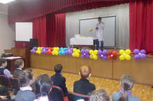 На примере химических опытов ученикам показали, что происходит с организмом человека при употреблении вредных веществ. Вел мероприятие основатель программы Галимов Марат. Посетили мероприятие уч-ся с 4 по 11 класс.