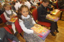 Традиционно каждый первоклассник от ОАО «Ак Барс Банк» и газеты «Нижнекамская правда» получают в подарок брошюру-раскраску и канцелярские товары.