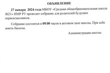 Муниципальное бюджетное общеобразовательное учреждение «Средняя общеобразовательная школа №21» Нижнекамского муниципального района Республики Татарстан/Татарстан Республикасы Түбән Кама муниципаль районының"21 нче гомуми урта белем бирү мәктәбе"муниципаль бюджет гомуми белем бирү учреждениесе
