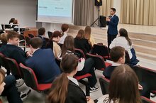 Знакомство с "Движением первых" в каждой школе! Сегодня в нашей школе прошла встреча- презентация с главным специалистом Российского движения детей и молодёжи «Движение первых» Ахметшиным Райнуром Рустемовичем. В ходе презентации школьникам рассказали о первом съезде РДДМ, о концепции и структуре объединения.