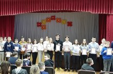 В актовом зале для учащихся старшего блока состоялась линейка по итогам двух четвертей. Грамотами были отмечены отличники учебы, активисты, спортсмены