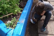 Сегодня ребята ЛТО благоустраивают цветники, убирают с асфальта землю и мох