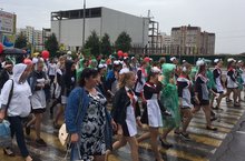 Девочки 9 классов ДОО "Лидер" принимали участие в городском параде,посвященном юбилею НКНХ