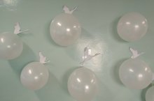 Во 2 Б классе прошла патриотическая акция "Белые журавлики" ко Дню Неизвестного солдата. Дети вырезали журавлей и с шарами оформили стену второго этажа.