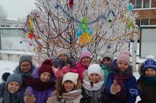 В нашей школе был объявлен конкурс на самое красивое украшенное дерево вокруг школы.
