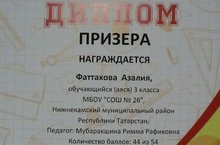 3 нче Б сыйныфы укучысы Фәттахова Азалия татар теле буенча “Эрудит” республика олимпиадасында катнашып, призер булды. Афәрин, Азалия! Алга таба да уңышлар юлдаш булсын сиңа!