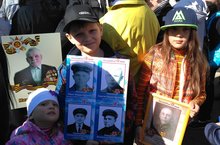 Портреты победителей несут
