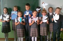 2Б класс включился в эту акцию, на классном часу ребята вспомнили тех, кто все сделал. Чтобы мы сейчас жили в мире. Дети подготовили голубей к запуску.