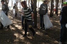 На основании положения муниципального природохранного месячника "Сохраним природу вместе", с целью привлечения внимания школьников к проблемам и состоянию окружающей среды, оказания практической помощи по очистке и благоустройству внутригородских и лесных пригородных массивов, городских парковых зон мы приняли участие в Международной акции "Марш парков" с выходом экологического десанта в Городской парк города.