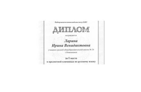 Поздравляем ученицу 11А класса Ларину Ирину Венедиктовну и учителя Волкову Марианну Романовну занявших 1 место в предметной олимпиаде по русскому языку.