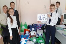 Прошлогодние победители акции снова в деле! Активисты по сбору макулатуры - 6Б класс и классный руководитель: Кунгурова Гульназ Рафаэловна.
