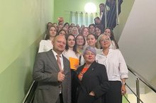 «Һөнәргә адым: уңышлы старт - 2023 «Оранжевая перемена» галстуксыз педагоглар очрашуы. 36 нчы мәктәптә яңа уку елында педагогик эшчәнлеккә керешкән яшь белгечләр белән очрашу узды. Чара Түбән Кама муниципаль районы мәгариф идарәсе, Түбән Кама мәгариф хезмәткәрләренең профсоюз оешмасы, 36 нчы мәктәпнең яшь педагогик хезмәткәрләр советы ярдәмендә үткәрелде. Проект кураторлары, 36 нчы мәктәпнең директор урынбасарлары - Дарья Носова һәм Карина Суслова яшь хезмәттәшләрне проектның булачак чаралары белән таныштырдылар. Яшь педагоглар оешмасы рәисе Роман Бабанкеев, рус теле һәм әдәбияты укытучысы Анна Бабанкеева «Педагог һәм остаз елы» кысаларында, командалар арасында квиз уздырдылар.Наши молодые специалисты: Агапова Екатерина Алексеевна, Скудина Анастасия Игоревна, Ахмадуллина Динара Илгизаровна, Ильдерханова Язиля Гусмановна.