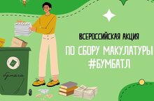 С 10 октября по 15 ноября проходит Всероссийская акция «Бумбатл» по сбору макулатуры. Подробнее об акции и регистрация на сайте https://бумбатл.рф/