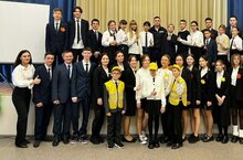 С 23 по 27 октября 2023 года в школе проходит "Неделя безопасности". На фото линейка по правилам дорожного движения с инспектором ГИБДД Гимадеевым Рамилем Ильсуровичем и юными инспекторами дорожного движения.
