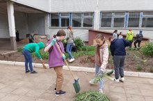 День труда и отдыха. Ребята из пришкольного не только отдыхают и развлекаются, но и активно стараются помочь, чтобы школа всегда выглядела чисто и опрятно. Какие они все молодцы!