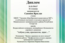 Поздравляем с победой Савинова Ярослава ученика 5"В" класса ставшим призёром Всероссийского конкурса, посвященного безопасности дорожного движения