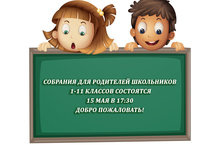 Родительские собрания 1-11 класы состоятся 15 мая в 17:30