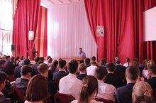 Сегодня в актовом зале школы состоялась встреча старшеклассников с начальником Нижнекамской автошколы РОСТО ДОСААФ Республики Татарстан - Сахно В.С.