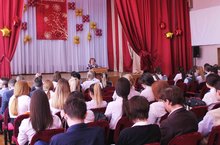 Сегодня в актовом зале школы была проведена линейка для учащихся 9-ых классов. Тема линейки подготовка к ЕРТ по татарскому языку.