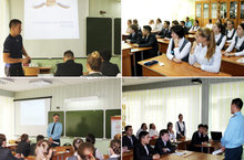 В актовом зале школы состоялась встреча учащихся 6-7 классов с доцентом кафедры ИСМ КИУ НФ Михайловой Г.Н.