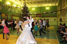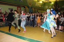 Вальсом открыли новогодний бал старшеклассники. Под музыку Георгия Свиридова вальсировали 17 пар. Ещё, каждый класс подготовил оригинальный новогодний номер. Ведущие вечера, Марина, Булат, Родион, как всегда зажигали публику. Лев и Руслан заводили всех супер-ритмами. Было классно!