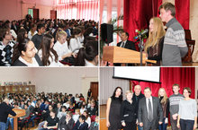 13 октября в актовом зале школы прошла встреча преподавателей КНИТУ (КХТИ) с учащимися выпускных классов школ города. Перед ребятами выступили Князев В.О.(зам.проректора по НО), Моисеев В.О. (доцент каф. экономики), Черкашина Ю.А. (зам. директора лицея-интерната им. Кирпичникова), Крутов И.А.(аспирант каф. Орг. химии), Яшина А.В.(аспирант каф. ФННХ). Выступавшие рассказали об истории создания университета, о студенческих буднях, о своих факультетах и кафедрах, а также ответили на вопросы из зала.