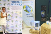 Поздравляем Пантелееву Ксению (2А класс, науч.руководитель Пантелеева О.А.) с I местом в Открытом Республиканском молодёжном конкурсе социальной экологической рекламы. Конкурс проводился Министерством экологии и природных ресурсов РТ в городе Иннополис. Вместе с грамотой, Ксюше вручили красивый хрустальный светильник и книгу "Хартия Земли в Татарстане". Молодец, Ксения!