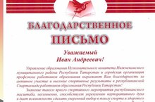 Управление образования НМР и городская организация профсоюза работников образования благодарят Сумина Ивана Андреевича за активное участие и высокие результаты в Республиканской спартакиаде работников образования. Поздравляем и желаем дальнейших побед!