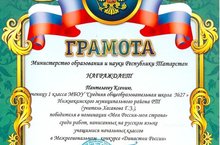 Поздравляем Пантелееву Ксению, ученицу 1А класса (кл.руководитель Хасанова Г.З.), с победой в Международном конкурсе "Династии России" в номинации "Моя Россия-моя страна" среди работ, написанных на русском языке. Молодец, Ксюша!