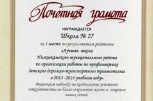 По результатам рейтинга "Лучшая школа Нижнекамского муниципального района по организации работы по профилактике детского дорожно-транспортного травматизма в 2013-2014 учебном году" наша школа заняла I место!