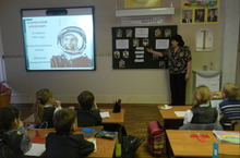 Сегодня, 12.04.14 года, во 2-10 классах прошли классные часы, посвященные 53 – ей годовщине полета человека в космос под названием «108 минут вместе с Гагариным», в фойе школы были показаны документальные фильмы: «Космос и Гагарин», в школьной библиотеке была организована выставка под названием «Первопроходцы космоса»