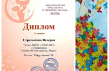 Перелыгина Валерия, ученица 7Б класса, награждена дипломом I степени.