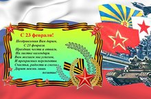 Уважаемые наши мужчины, поздравляем вас с 23 Февраля! Желаем, чтобы каждый день дарил вам новые яркие перспективы, блестящие успехи, радостные события и только добрые вести! Будьте полны сил и энергии, пускай вас всегда поддерживают родные и близкие, а удача будет только на вашей стороне! Всех благ вам и безграничного счастья!