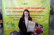 Поздравляем ученицу 9А класса Абдуллину Алию с дипломом 2 степени во Всероссийском Форуме " Сөй гомерне, сөй халыкны, сөй халыкның дөньясын". Педагоги: Гильфанова Г.Р. и Мингараева Г.М.