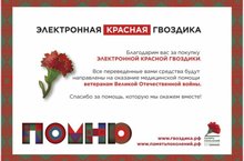 В этом году Россия отметила 75-летие Победы - мы можем поблагодарить героев нашей страны не только словом, но и делом. Приобретая «Электронную Красную гвоздику», вы помогаете ветеранам: все собранные в рамках акции средства направляются на медицинскую помощь ветеранам Великой Отечественной войны.