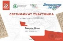 Поздравляем ученика 1А класса Зарипова Айдара (классный руководитель Зиннатуллина Гульнара Дилюсовна) активного участника конкурса рисунков "Эковесна - 2020".
